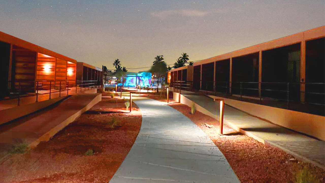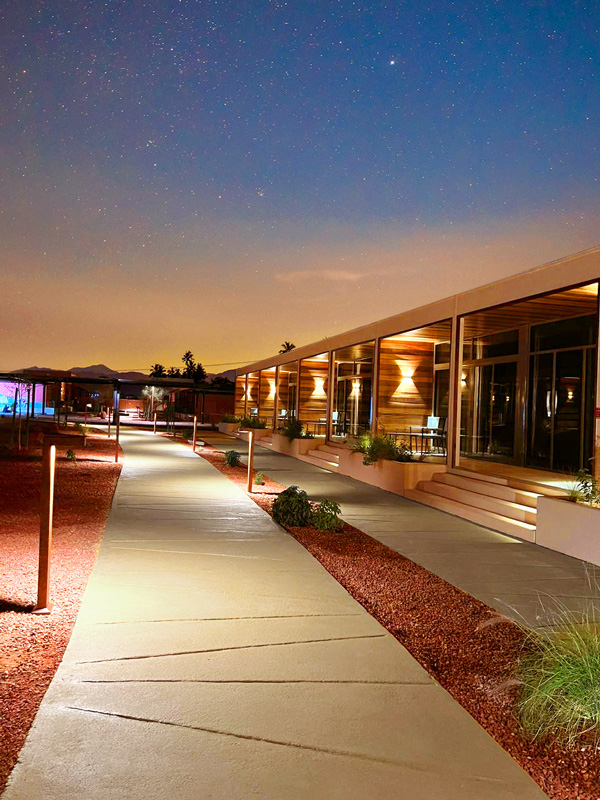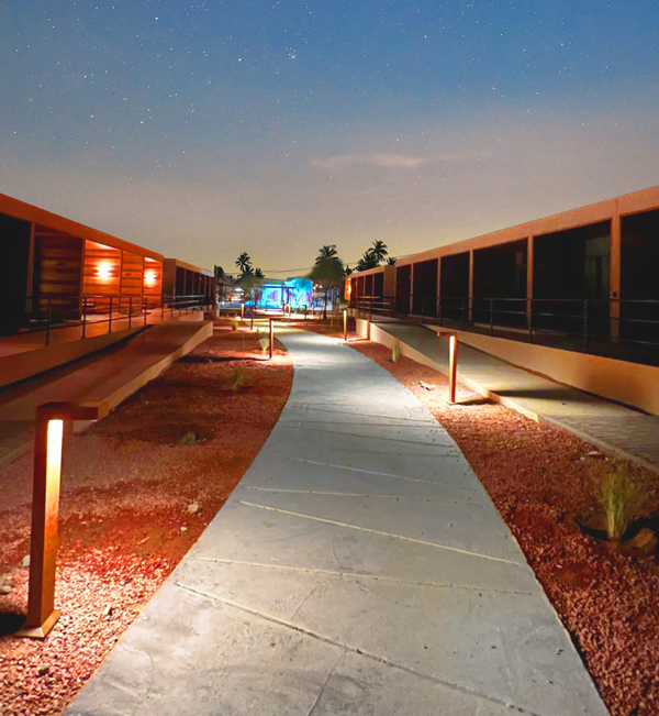 El planteamiento lumínico del complejo partía de la necesidad de crear una atmósfera cálida y agradable que acompañara la arquitectura contemporánea del conjunto sin desvirtuar el carácter histórico del entorno de AlUla, conocido por sus yacimientos arqueológicos milenarios.