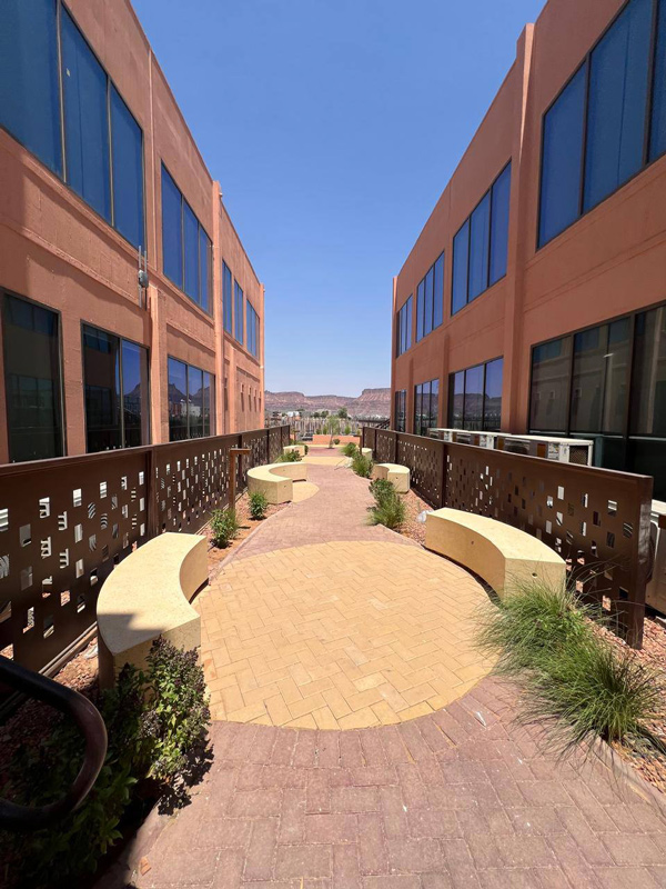 Los métodos de iluminación convencionales fueron descartados en las fases iniciales de diseño debido a sus limitaciones en términos de regulación y consumo energético. En su lugar, se optó por una solución basada en luminarias personalizadas para postes y balizas en forma de “L”, desarrolladas por Lumo FZE específicamente para el proyecto. Estas luminarias incorporan controladores LED compatibles con el protocolo DALI de Tridonic, lo que permite su direccionamiento individual y la regulación del flujo luminoso según las necesidades de cada zona.