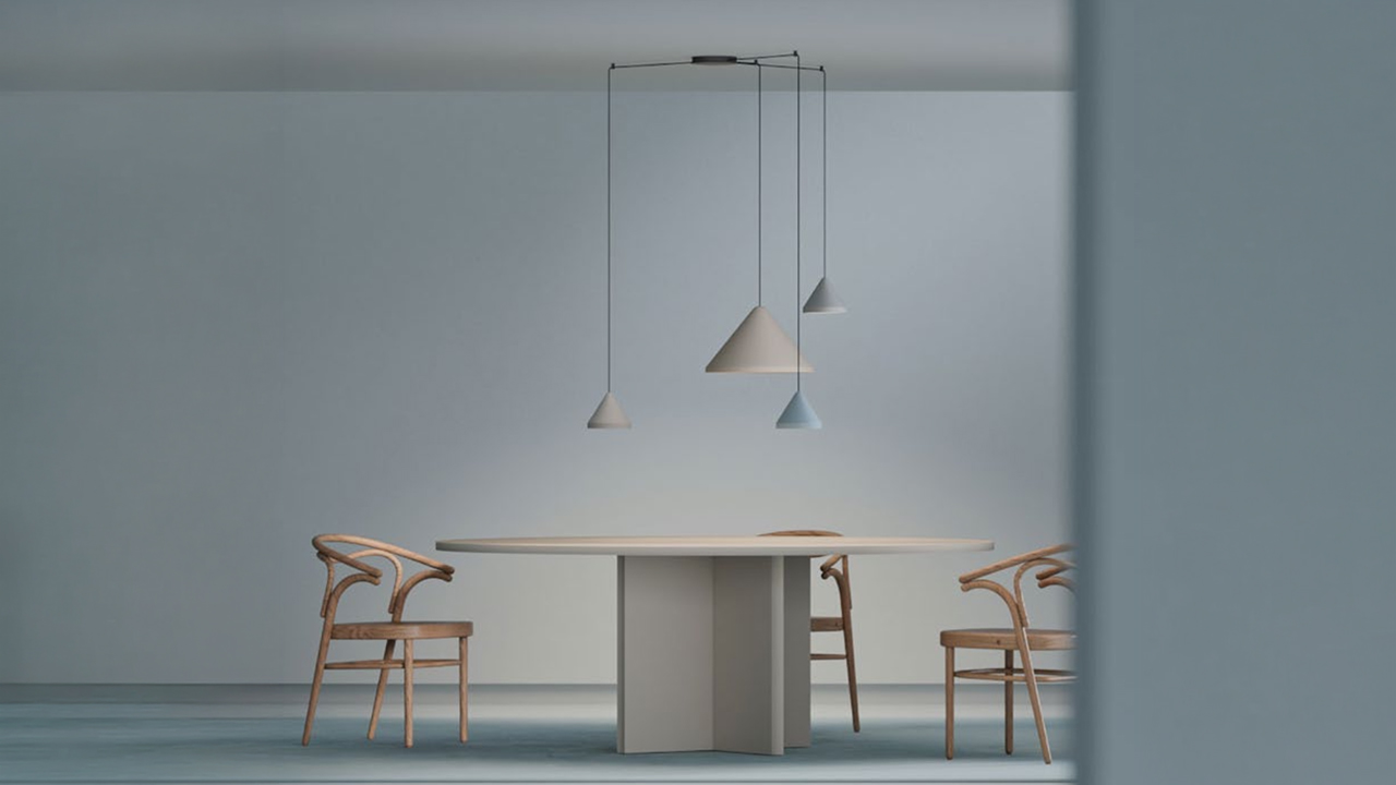 El sistema también reduce la presencia visual del florón, uno de los elementos que más condicionan la estética de las luminarias suspendidas. Al minimizar su tamaño y simplificar las conexiones verticales, el conjunto busca integrarse con mayor discreción en la arquitectura del techo, reforzando la sensación de ligereza y flotación de las luminarias.